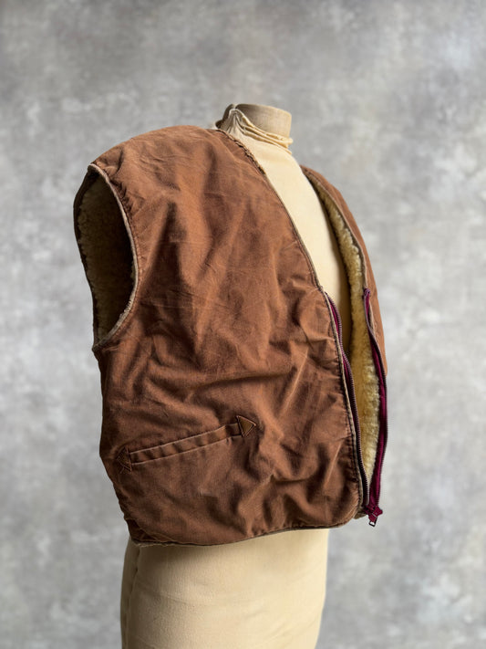 【~1970's】Vintage French Sheep Fleece Canvas Vest