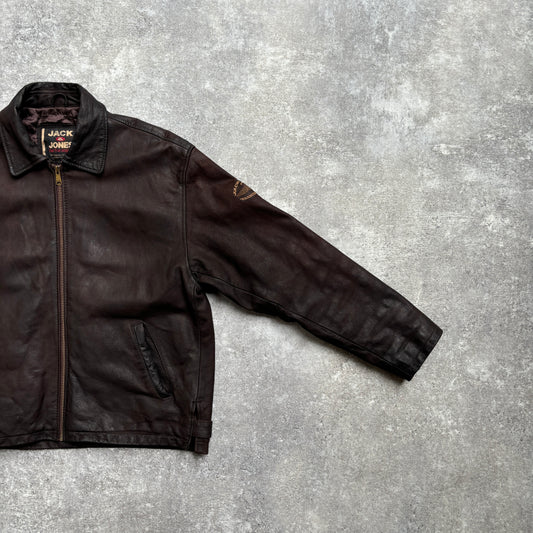 【~1990‘s】Brown Leather Jacket Single 『Jack & Jones』